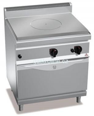 varných zón (4x 2,25kW), u plynového tálového vařidla je ohřev zajištěn výkonným středovým litinovým hořákem (10 kW). Plynový model muže